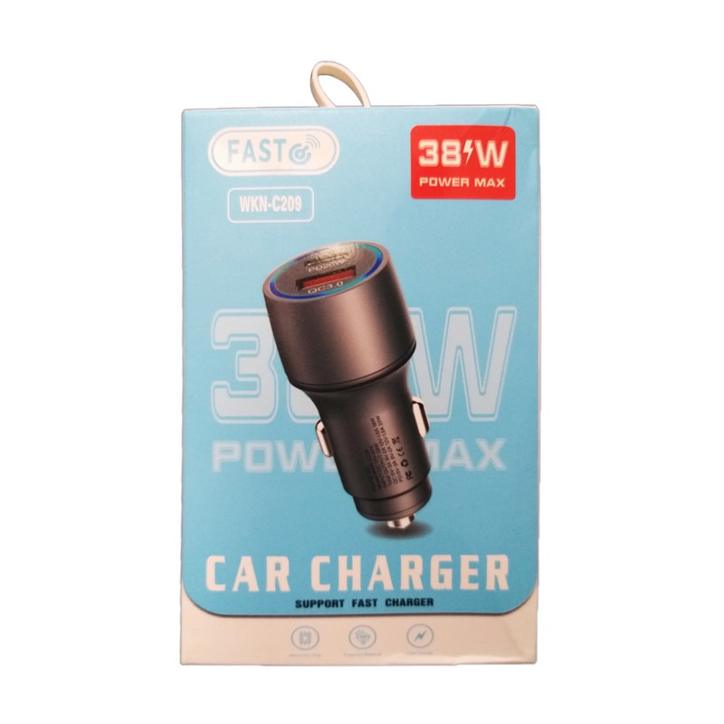 این محصول فست شارژر فندکی ۳۸ وات است که دارای یک پورت خروجی usb و یک پورت خروجی تایپ سی است.