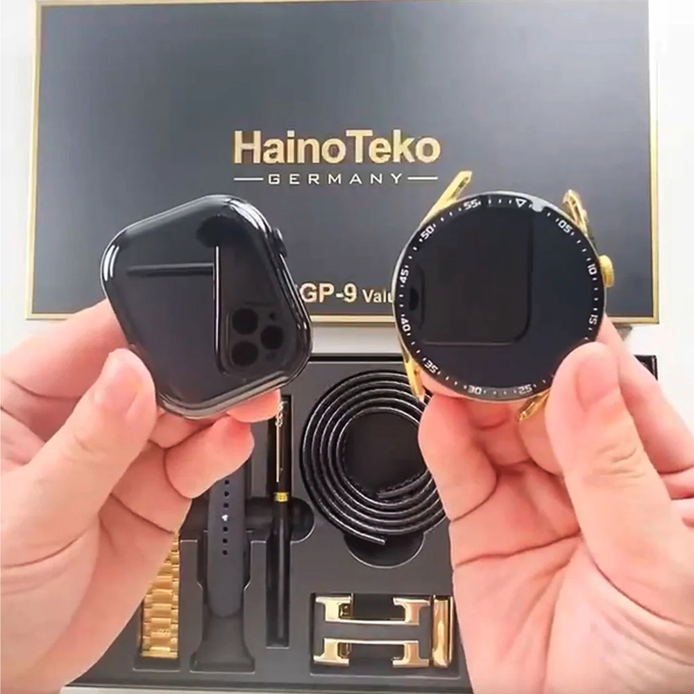 - اقلام موجود در جعبه: 2 ساعت هوشمند ، شارژر بی سیم، خودکار، کمربند، کیف پول، بند س…